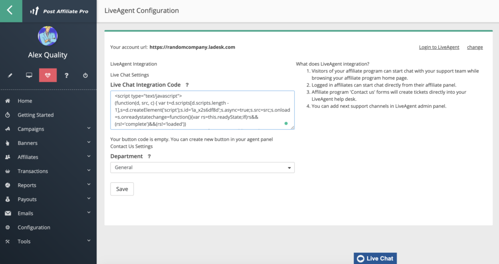 Como você pode integrar o Post Affiliate Pro ao LiveAgent?