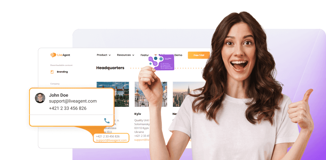 Melhore o atendimento ao cliente com as videochamadas baseadas em navegador do LiveAgent. Personaliz...