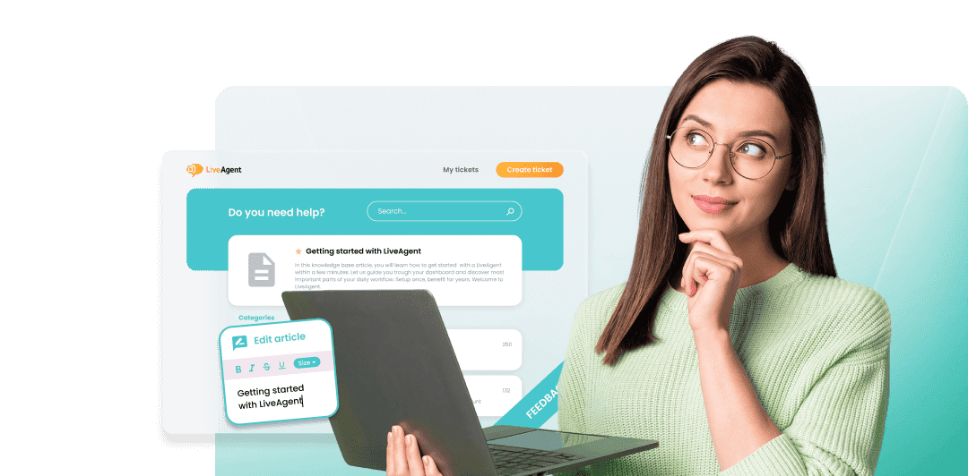 Crie artigos profissionais da base de conhecimento com o editor WYSIWYG do LiveAgent, apresentando f...