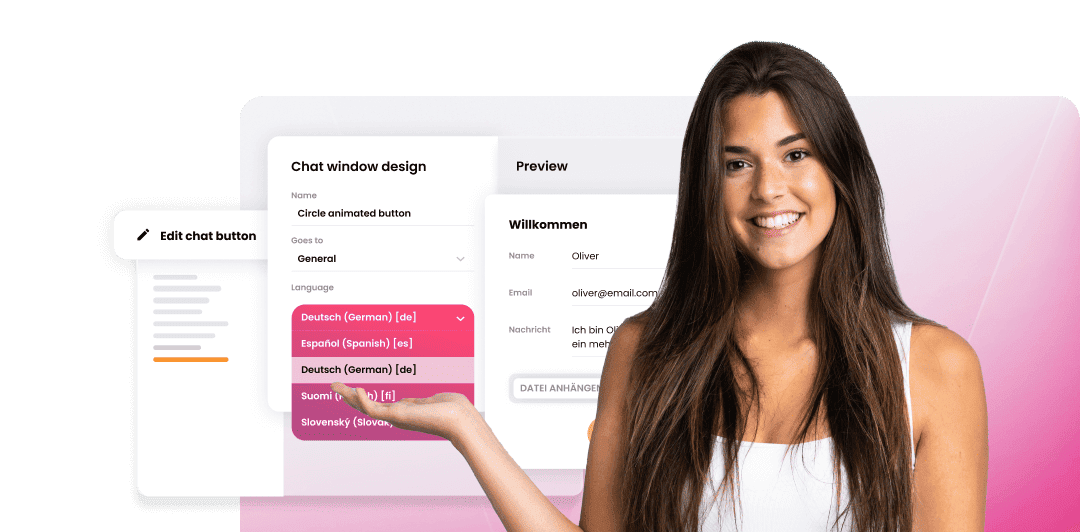 Melhore o atendimento ao cliente com o botão de chat personalizável do LiveAgent. Direcione consulta...