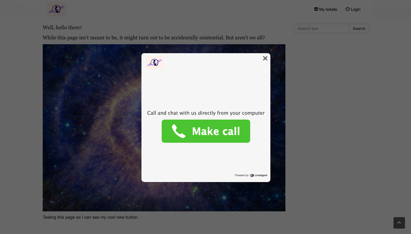 Clicar no botão Ligue para nós na minha página criou uma janela pop-up com texto personalizável, para que você tenha controle de como os clientes percebem seu serviço mesmo antes de iniciar a ligação.