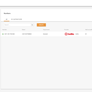 Depois de dar uma olhada por um tempo, eu estava pronta para testar as capacidades de gravação de chamadas do LiveAgent. Claro, você não pode gravar chamadas se não tiver um número VoIP e tronco SIP configurado. Sem preocupações, o LiveAgent fornece uma infinidade de integrações para isso, então não importa quem seja seu provedor VoIP, há boas chances de que o LiveAgent os tenha coberto. Para verificar quais você pode integrar, vá para o painel do atendente do lado esquerdo, clique em Configurações > Chamadas > Números, e então clique no botão laranja Criar.