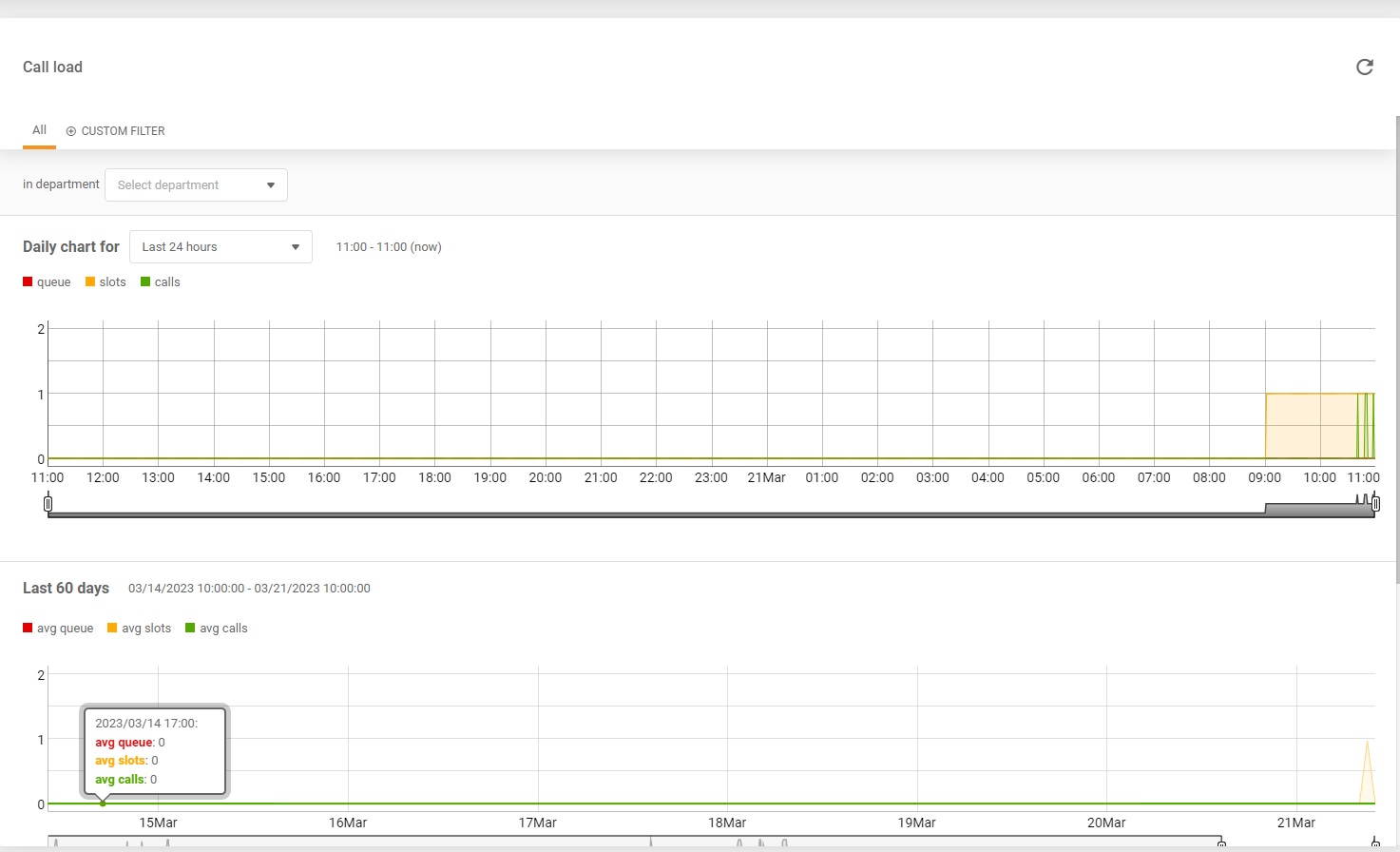 Além das gravações de chamadas, o LiveAgent também oferece um histórico abrangente de chamadas e um relatório de carga de chamadas para que você possa acompanhar todas as operações do seu call center.