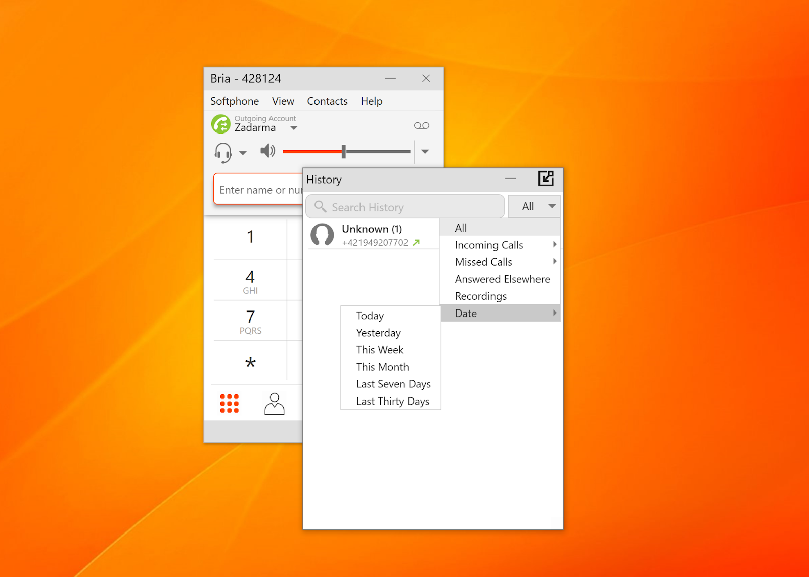 Existe uma boa opção para classificar as chamadas: chamadas recebidas, chamadas perdidas, chamadas que foram atendidas em outro lugar, gravações ou você também pode selecionar a opção de classificar as chamadas por data. Você pode escolher chamadas do último dia, último mês, última semana, últimos sete dias e muito mais. O recurso de histórico de chamadas é simples de usar e as opções de classificação de chamadas são um ótimo complemento.