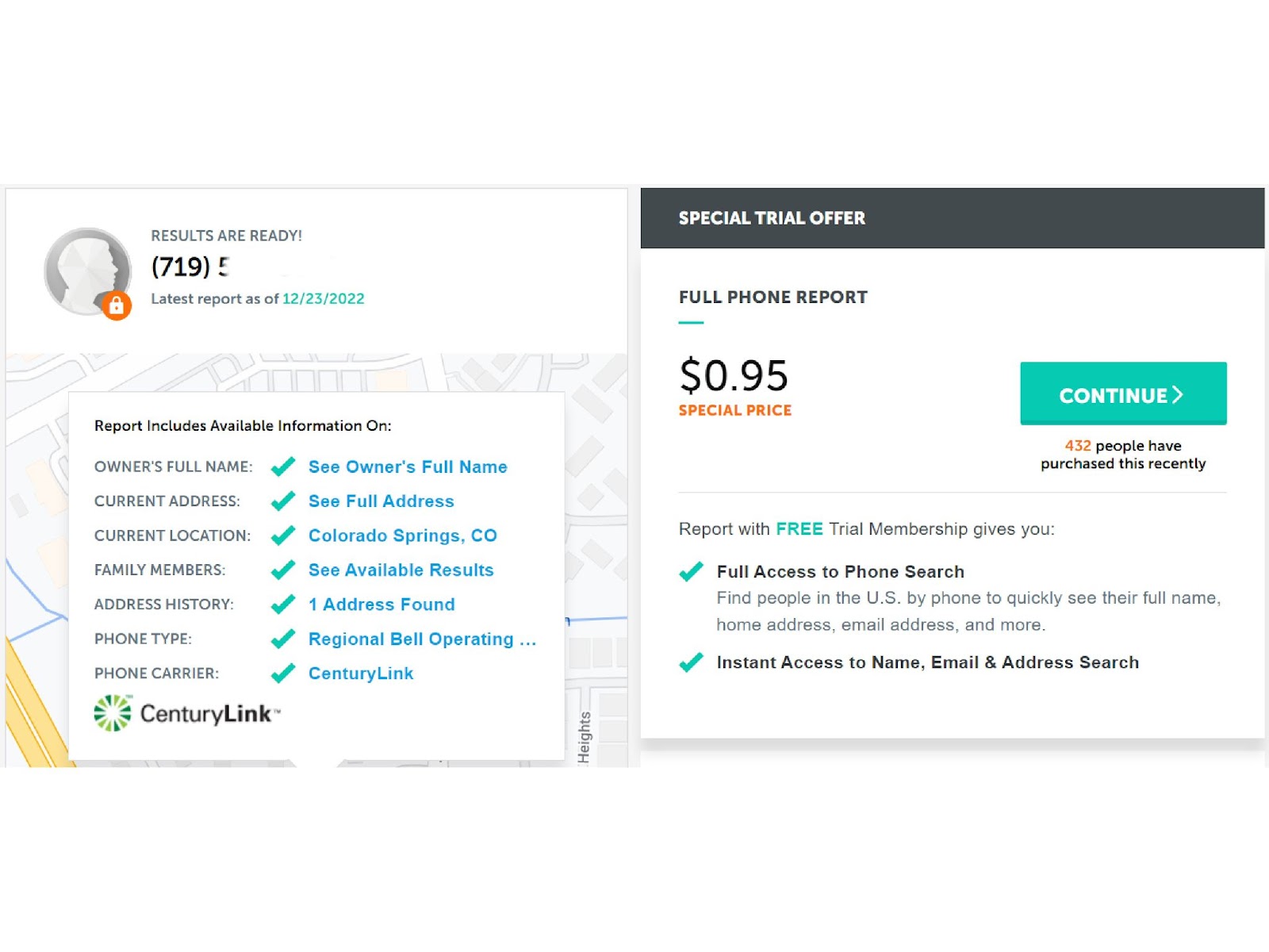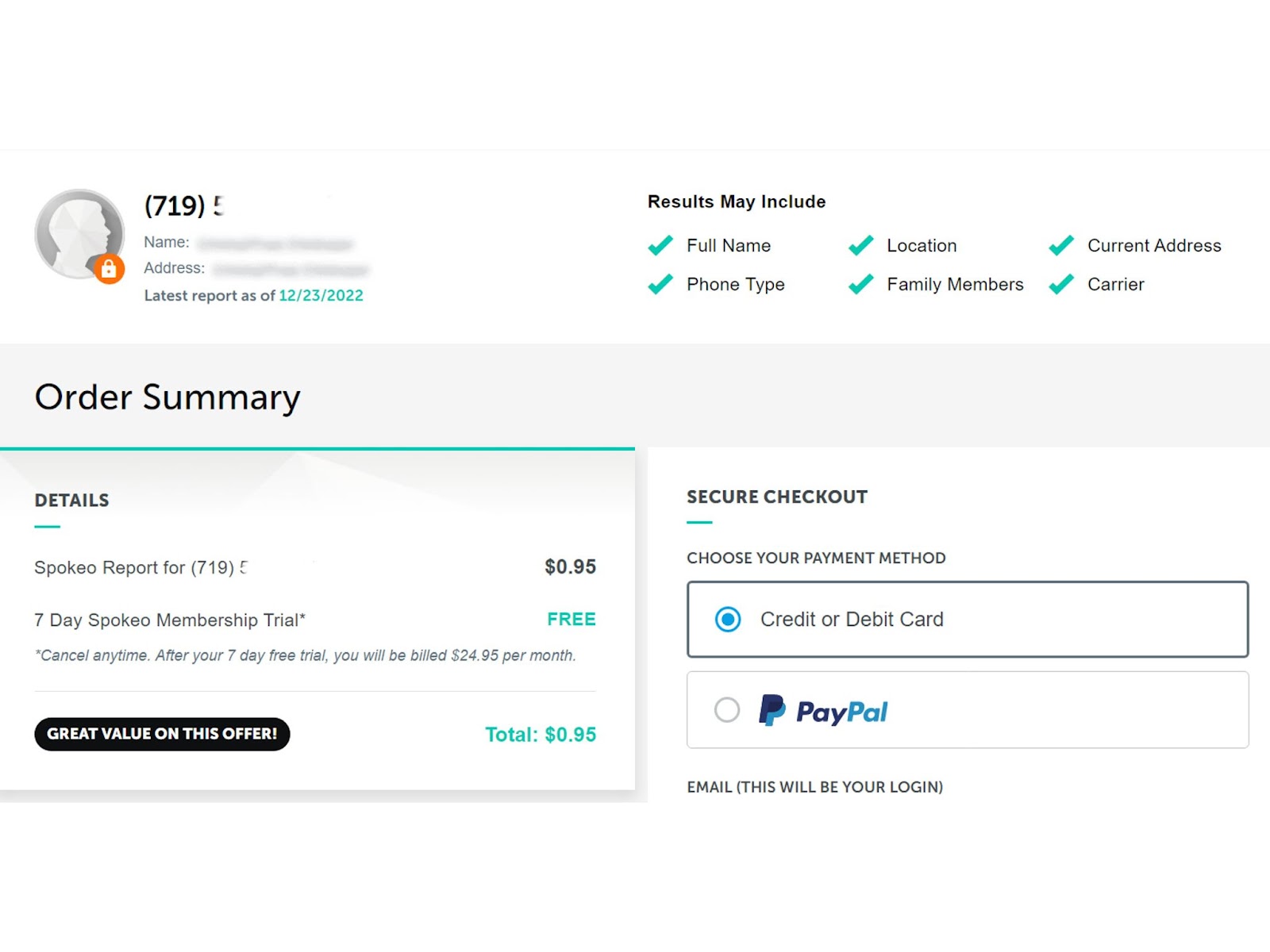 Ao contrário de muitos outros provedores de pesquisa reversa de números de telefone, o Spokeo não oferece uma versão gratuita. Embora permita inserir o número na barra de pesquisa, todos os resultados ficam bloqueados até que você pague. Planos de associação e preços não são fáceis de encontrar no site, pois não estão todos em um só lugar. Portanto, você pode lutar para encontrá-los.