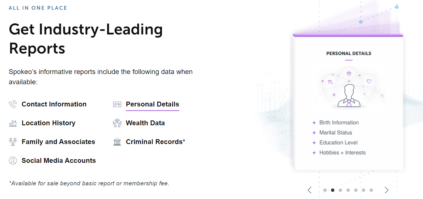 Além de uma pesquisa simples, o Spokeo oferece muitos recursos adicionais. Você pode acessar informações de contato, detalhes pessoais, histórico de localização, membros da família, registros criminais, plataformas de mídia social e muito mais.