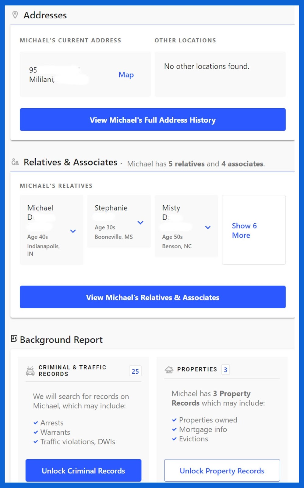 Você também pode fazer uma pesquisa reversa de endereço, verificações de antecedentes, pesquisar registros criminais, executar uma verificação de antecedentes do inquilino e muitos outros.