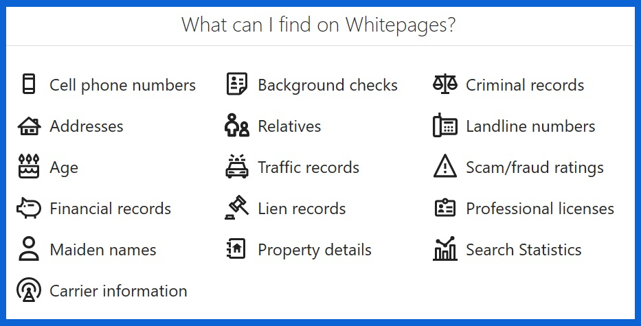 Whitepages oferecem diferentes recursos adicionais junto com a pesquisa reversa do número de telefone.